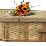 Each coffin features durable, convenient handles for carrying and a lined natural unbleached cotton interior with a matching pillow. Each bamboo coffin also includes a simple shroud.