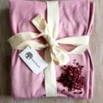 This shroud is made of a lightweight hemp, organic, and Pima cotton jersey from the USA. It has been soaked twice in a cauldron of rose petals and hibiscus flowers, turning it into a beautiful, feminine pink color.
