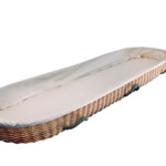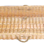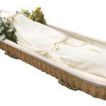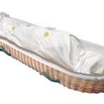 Designed for the dignified viewing or identification of a dressed or shrouded body and for funeral services, followed by cremation or burial. Carriers have a flat, rigid base and contain no metal or plastic components. They are supplied with a fitted natural cotton lining and matching pillow (not shown). Pillow stuffing made from shredded cotton. Complies with the requirements of natural burial grounds.